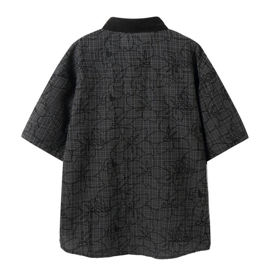 Dark jacquard loose men's and women's short sleeved shirt button top