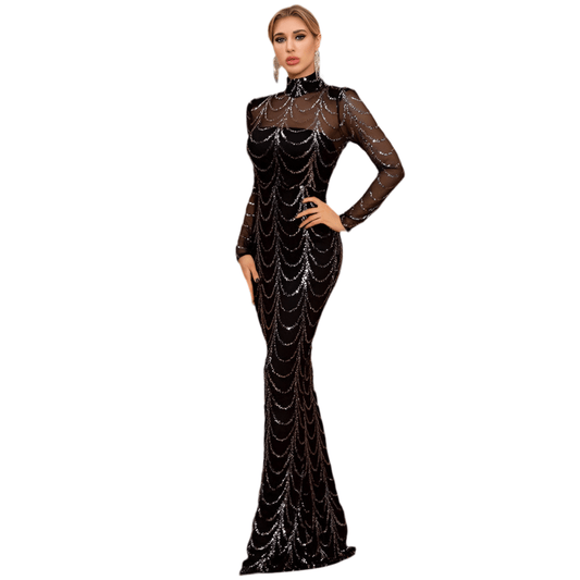 Sequins Women Maxi Dresses Long Sleeve Female Party Dresses