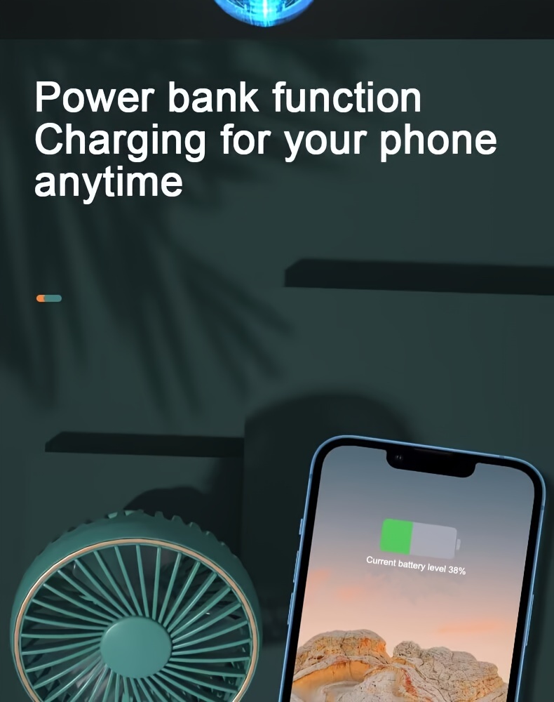 Ventilateur personnel compact - 5 vitesses, moteur sans balais silencieux, batterie externe rechargeable de 2 000 mAh, pliable, portable, durable, petit et léger pour une utilisation en extérieur ou en intérieur