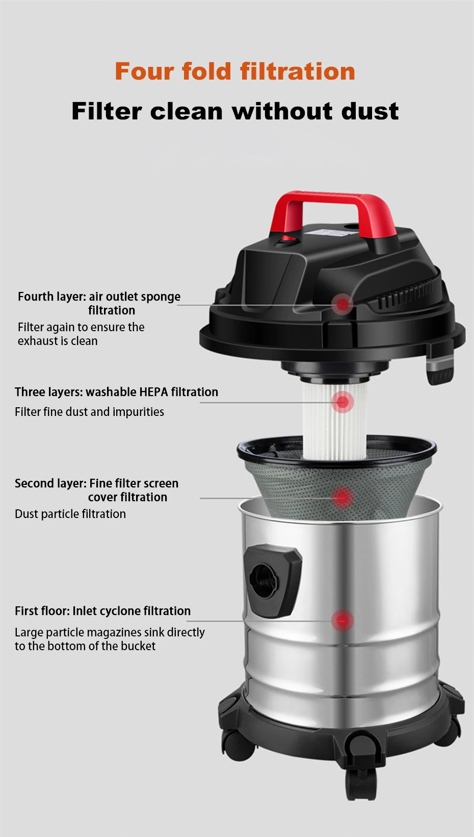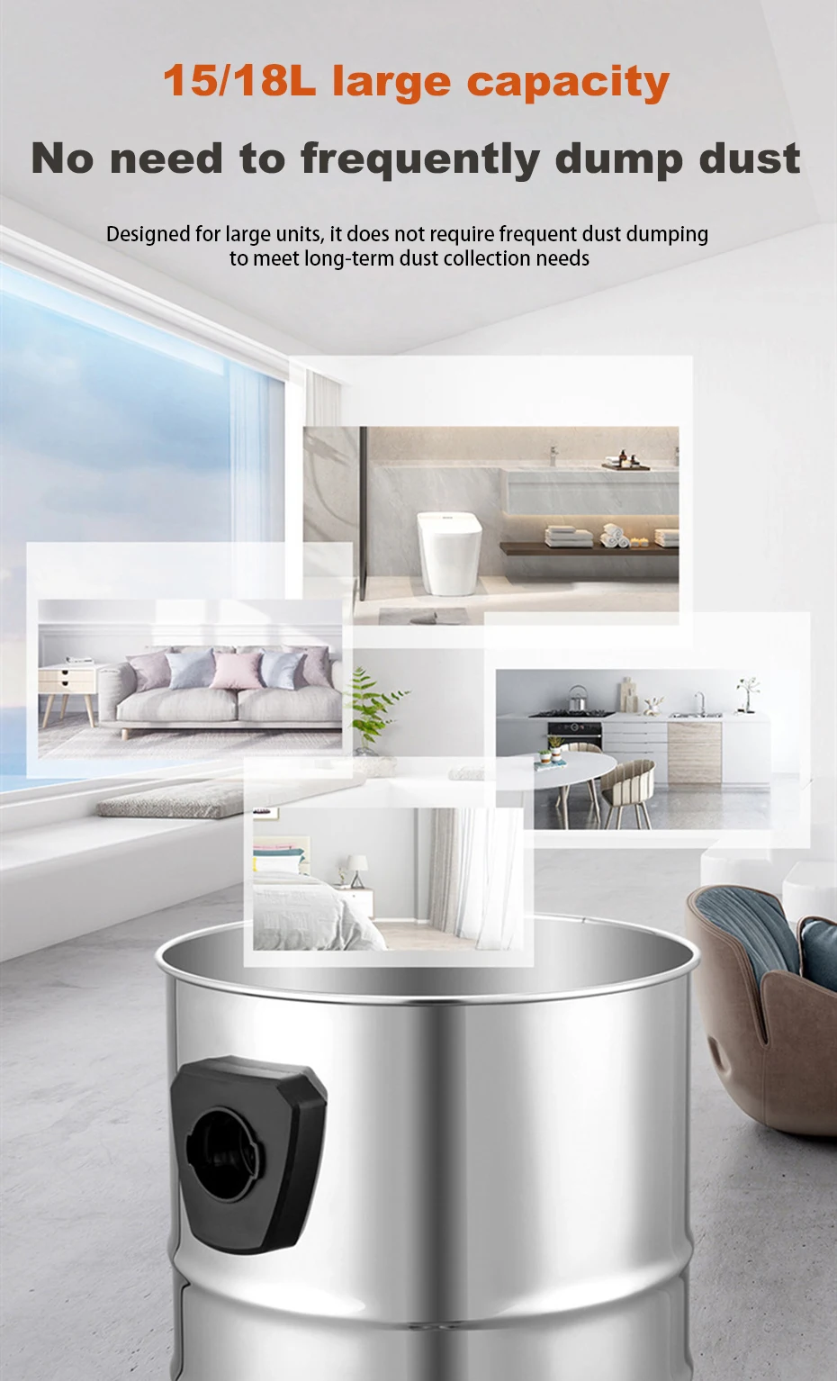Efficiently clean your home, car, or office with our versatile 220V Multifunctional Bucket Vacuum Cleaner. The 15L/18L/30L capacity offers powerful suction for both wet and dry messes, while the handheld design makes it easy to maneuver. Say goodbye to dust and debris with this reliable dust collector.