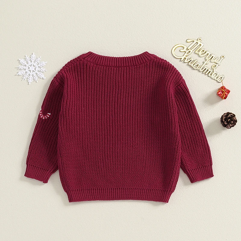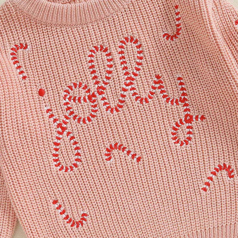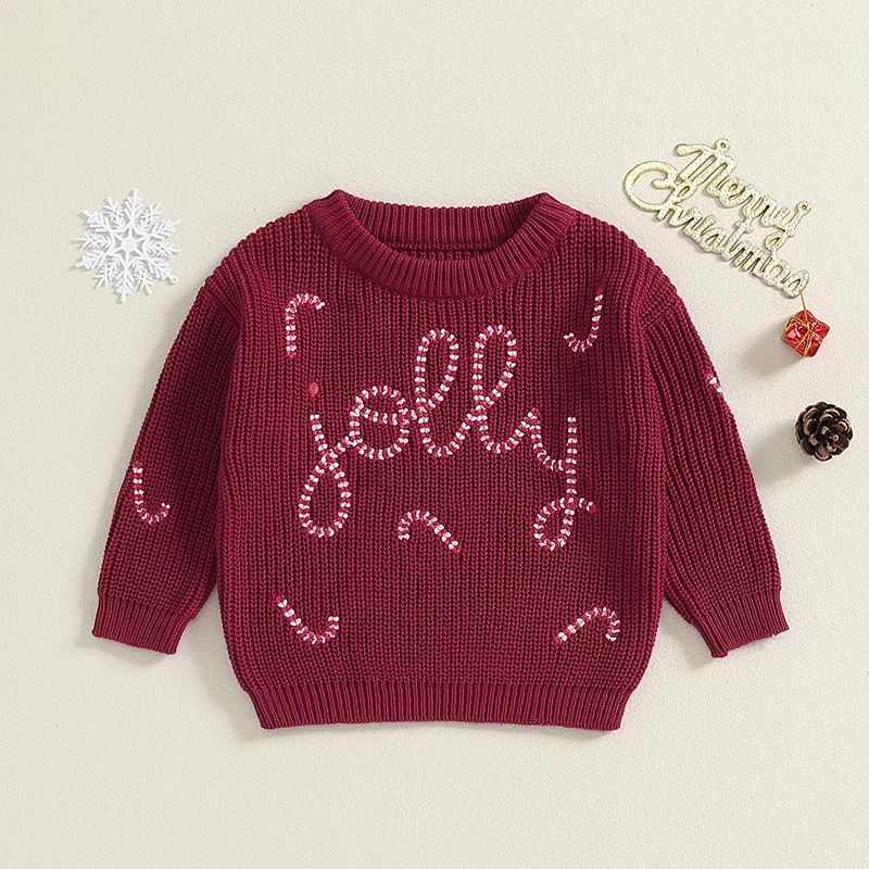 Newborn Christmas Sweater Casual Letter Cane Embroidery Warm Knitted Long Sleeve Pullover Infant Knitwear for ToddlerFeatures