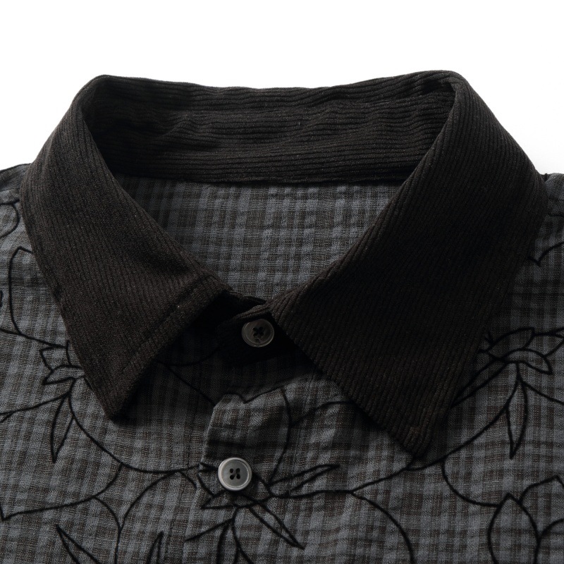 Dark jacquard loose men's and women's short sleeved shirt button top