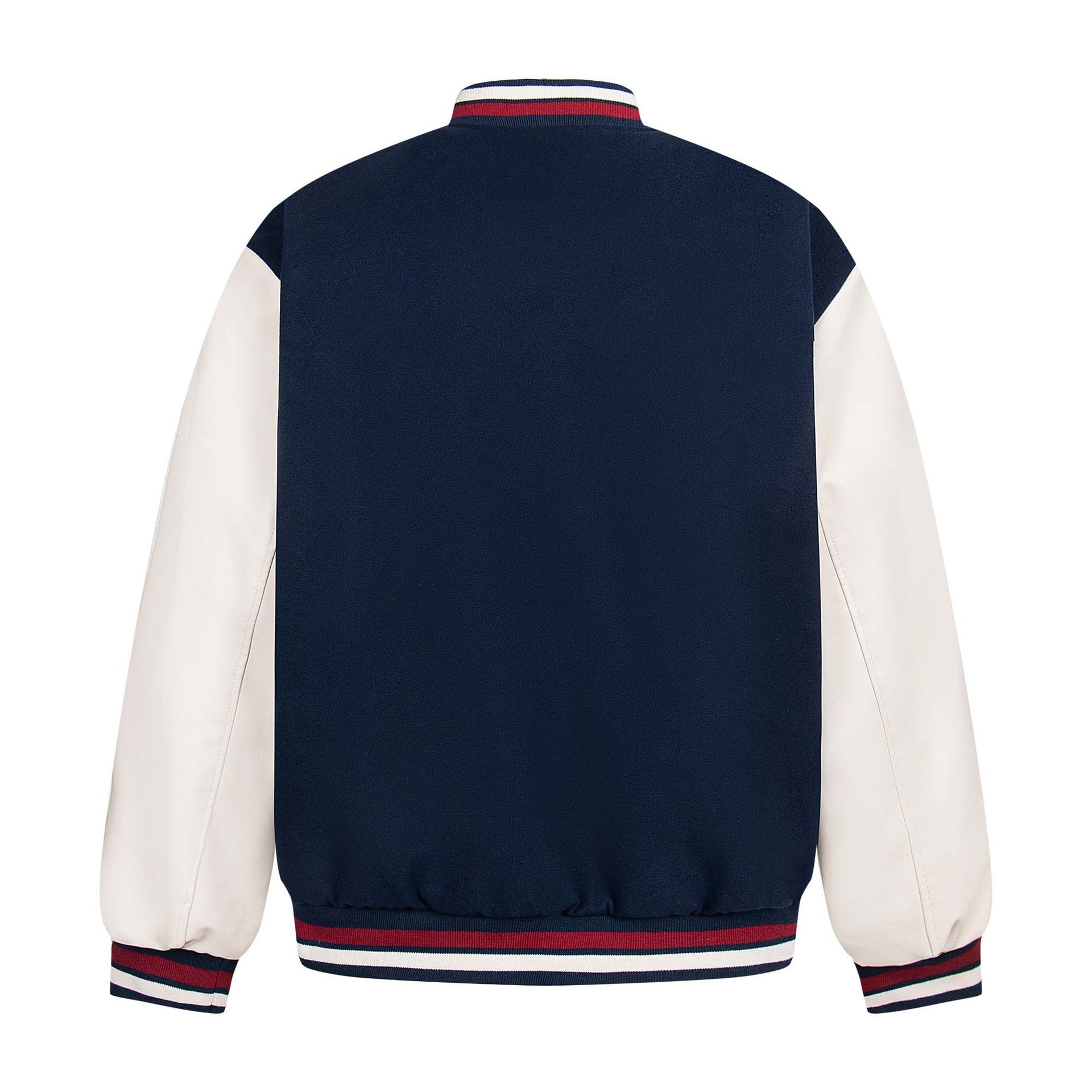 High Street Style Spliced Leather Letter Towel Embroidery Baseball Jacket Unisex Loose